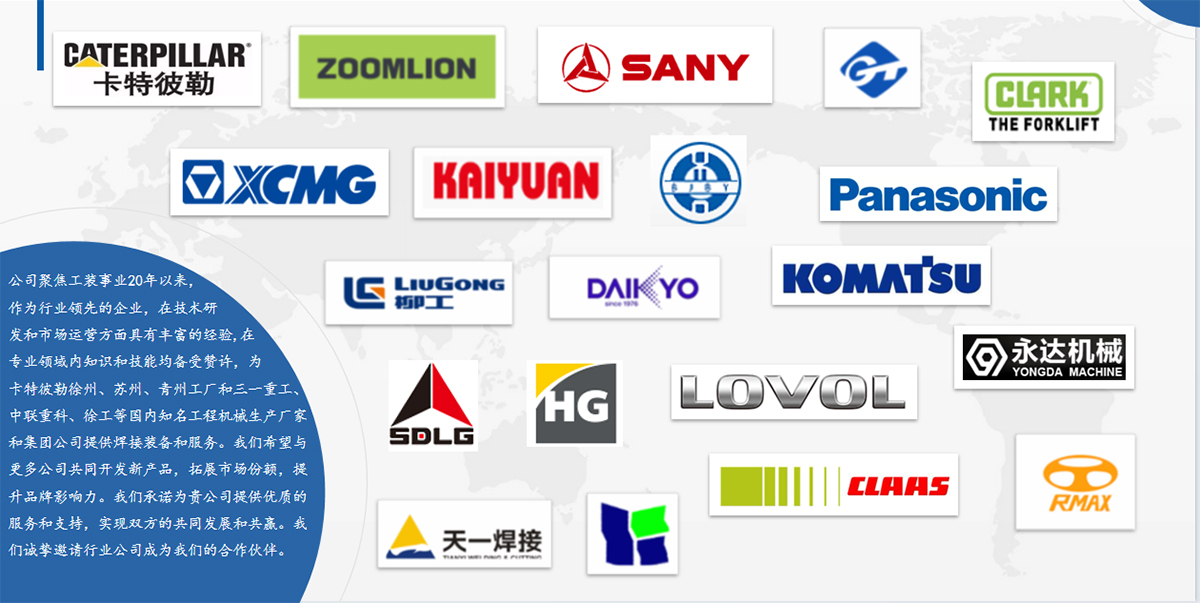 公司成立于2000年,注冊資本1000余萬元,生產(chǎn)面積約10000平。現(xiàn)有員工50余人,專業(yè)工裝設(shè)計師15人。公司設(shè)運營管理部、制造部、技術(shù)質(zhì)量部職能管理部門,是集ISO質(zhì)量環(huán)境管理體系、安全標(biāo)準(zhǔn)化企業(yè)為一體的高新技術(shù)創(chuàng)新企業(yè)。 公司主要從事工程機械制造、焊接工裝、焊接變位機、智能加工中心夾具、工業(yè)機器人為核心的非標(biāo)工裝、變位機、智能拼點、生產(chǎn)線集成配套、裝配線、智能機器人工作站集成服務(wù)、非標(biāo)專機設(shè)計制造,為客戶提供一站式整體解決方案和交鑰匙項目。公司聚焦工裝事業(yè)20年以來來,專業(yè)性強,為卡特彼勒徐州、蘇州、青州工廠和三一重工、中聯(lián)重科、徐工等國內(nèi)知名工程機械生產(chǎn)廠家和集團公司提供焊接裝備和服務(wù),目前已形成年產(chǎn)值3000余萬元的生產(chǎn)能力。
